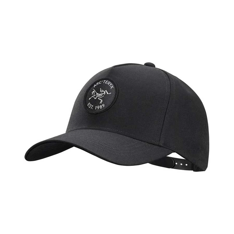Retro-styled ball cap with five-panel construction and an Arc’teryx patch.