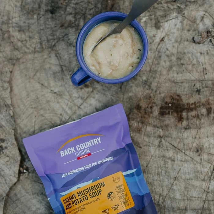 A light lunch or warming trail snack, the Back Country Cuisine Creamy Mushroom and Potato Soup is a hearty vegetarian soup that brings a touch of to a cold night in your tent.