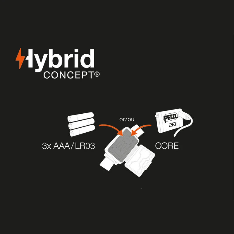 ACTIK® with a rechargeable battery! The ideal rechargeable headlamp to extend your dynamic outdoor activities. Casting 600 lumens, ACTIK® CORE provides powerful and comfortable lighting to go with you when you’re running, trekking, or mountaineering. Its phosphorescent reflector makes it easy to find in the dark and red lighting keeps you from blinding those around you when you’re with a group. ACTIK® CORE comes with the CORE rechargeable battery and also works with three standard batteries, thanks to its HYBRID CONCEPT design.