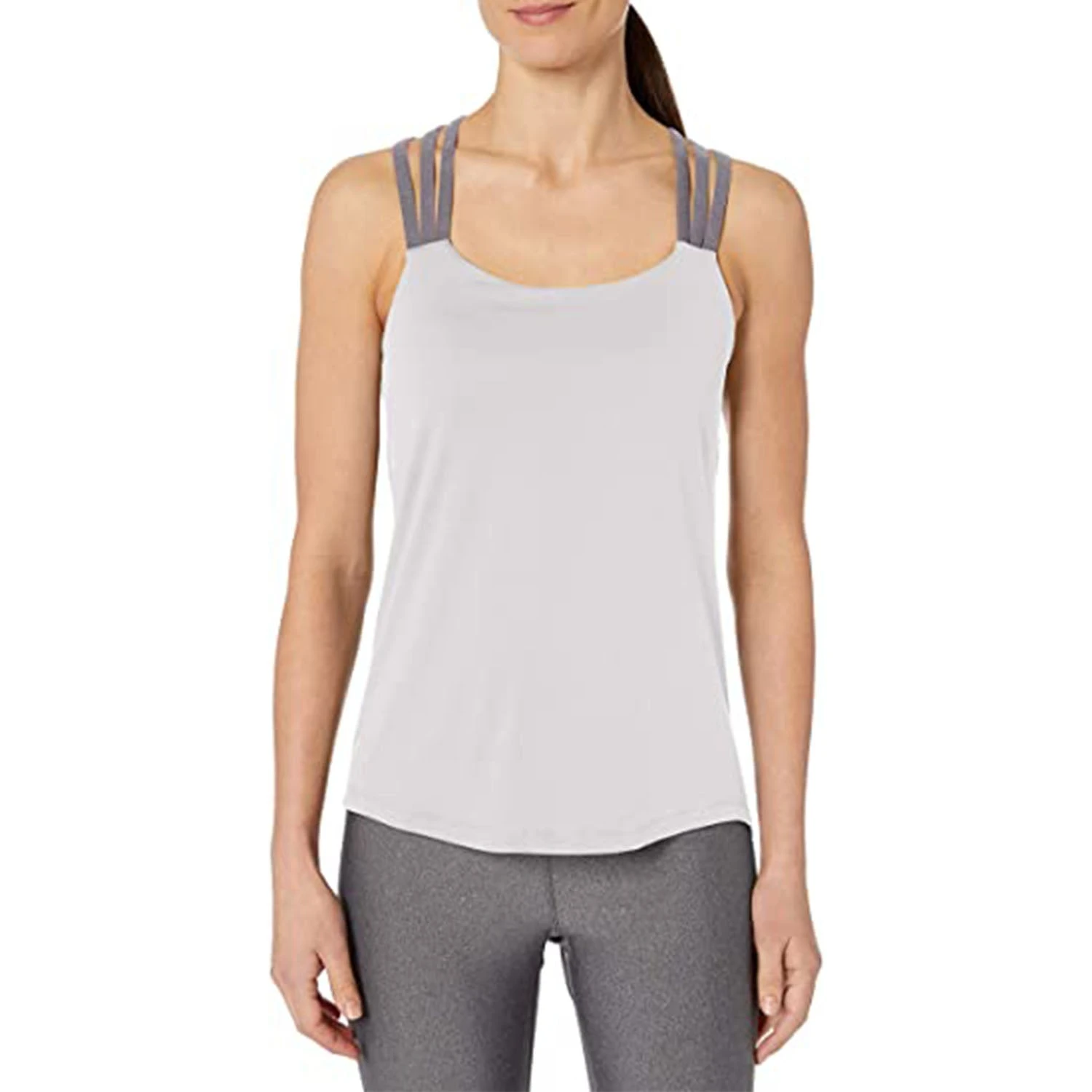 The Waterfall Tank by prAna is made from a lightweight performance melange stretch knit. This relaxed fit tank top is designed with moisture wicking and HeiQ Fresh Tech anti-odor technology. Styled with a scoop neck, high-low shirttail hem, and strappy back detail. Complete with interior bra with removable modesty cups.